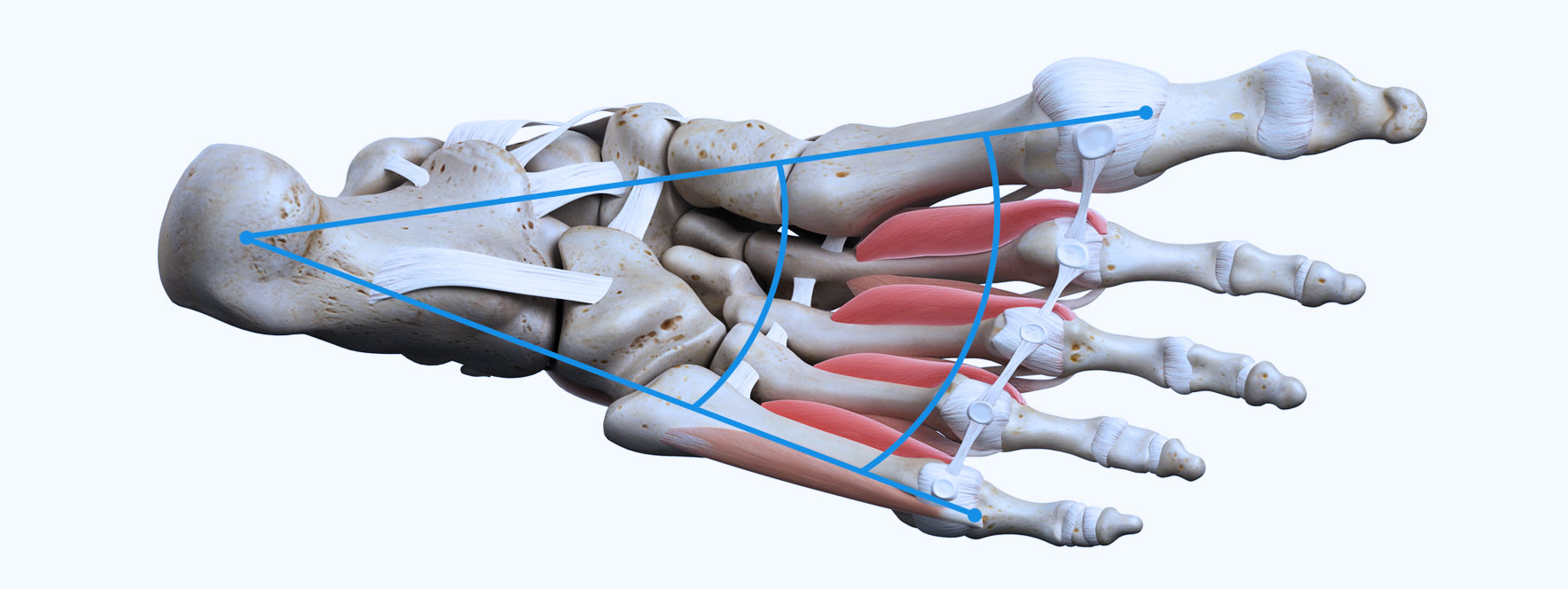 Le pied possède une arche dynamique soutenue par une multitude de petits muscles (les muscles intrinsèques). Dans une chaussure rigide ou trop assistée, ces muscles n’ont plus besoin de travailler pour maintenir la structure du pied.